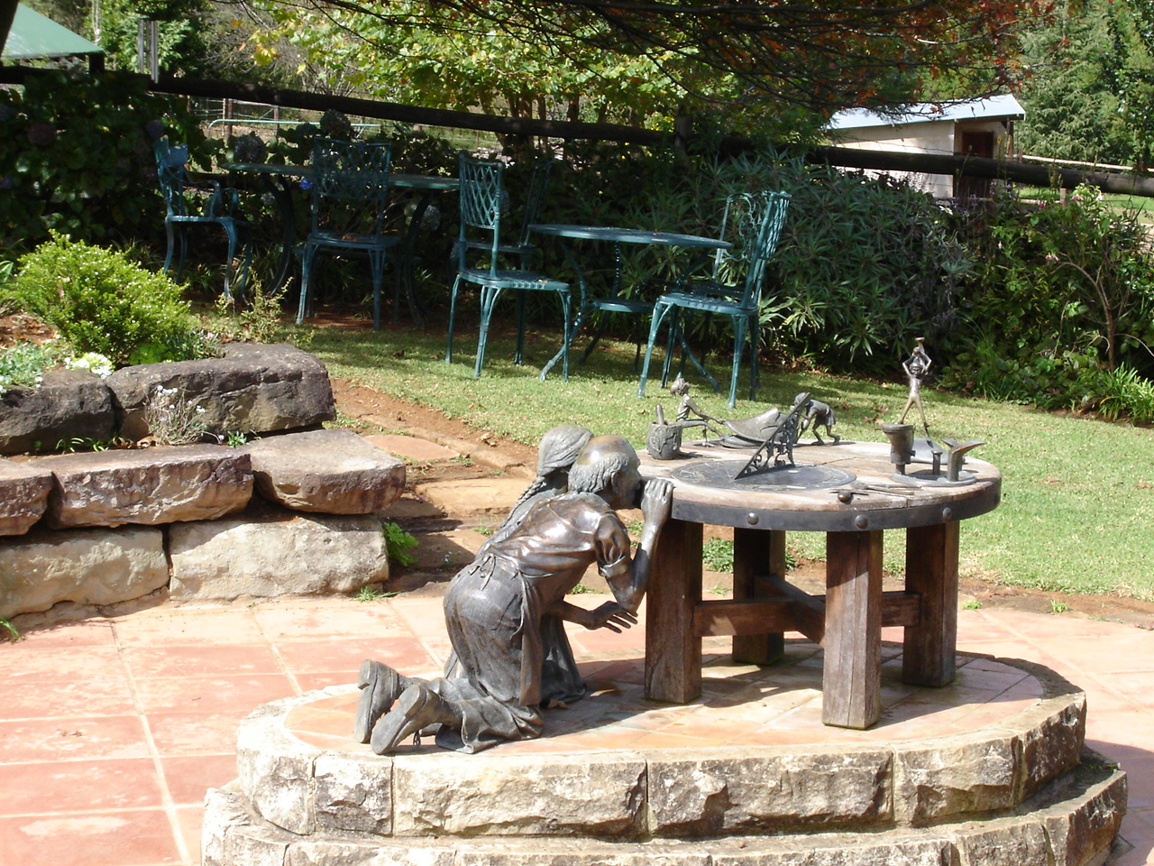 The Midlands Meander is a charming self-drive which winds its way through the lower reaches of these mountains. Along the way there are numerous stopping points at private home-galleries where you can enjoy art and craft of the local artists of an extremely high standard varying from exceptional leather work, pottery, weaving and unique jewelry to paintings and finely crafted furniture. All the time one can enjoy magnificent vistas over hidden valleys, rolling hills and the peaks of the ‘berg in the far distance. Many of the galleries include a tea room or restaurant too and it is a treat to enjoy a fresh cup of tea or delicious milkshake, home baked scones with farm picked preserve or hot morning-made, flaky pastry, chicken pie and sit quietly enjoying the special tranquility and champagne quality of the air of this region. There is even a Piggly Wiggly much to the delight of us who live in Southern United States and associate this with a kind of ‘mom and pop’ grocery store! Instead you will find a perfectly refined collection of shops set around a green square of lawn and selling an eclectic mix of fine pottery, hand-made clothing and gifts, unique furnishings, and fresh produce from the local farmers. This all tied together by a quaint country restaurant offering delicious teas and lunches to hungry meanders!