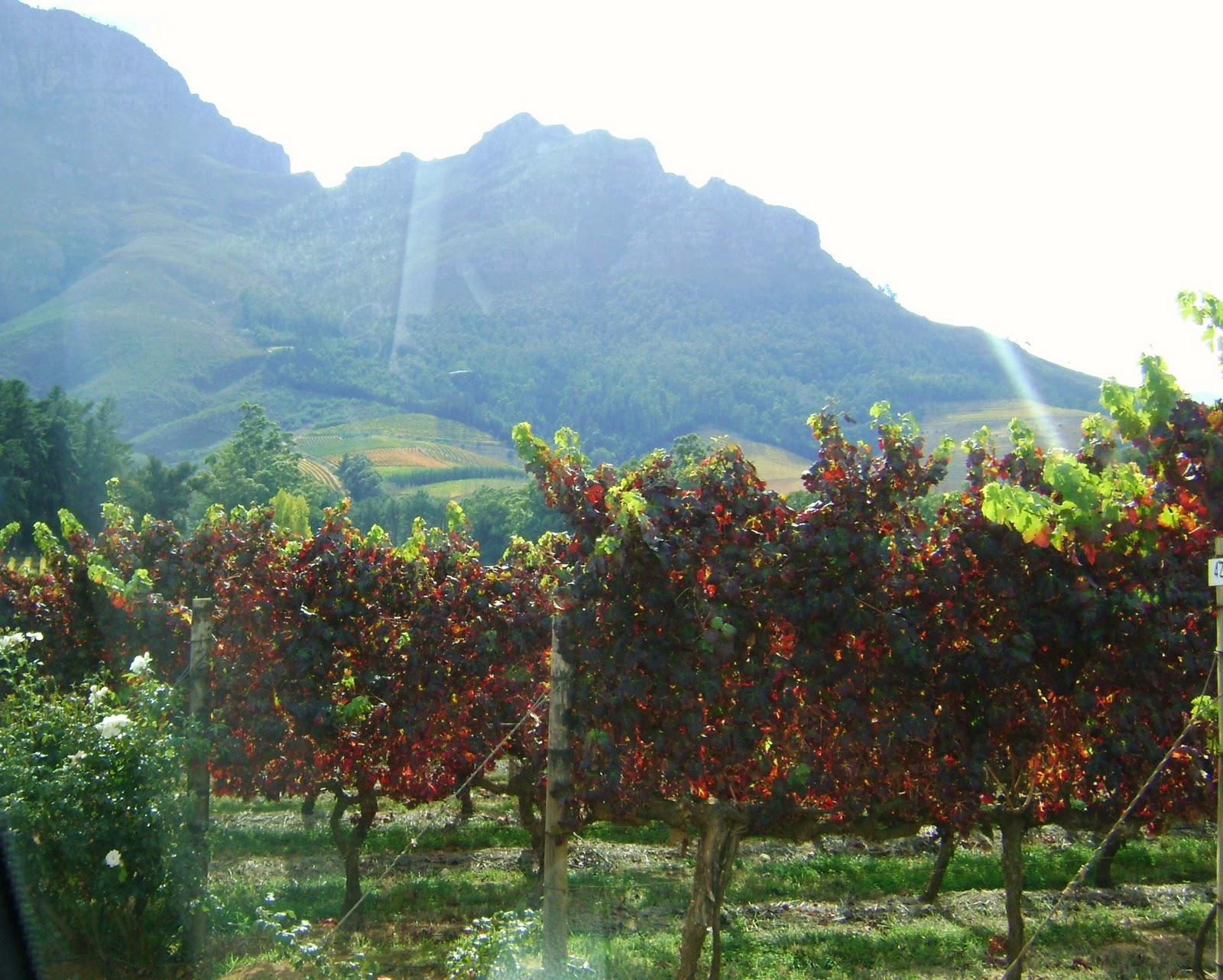 From Cape Town city it is a 30 – 40min drive to the little university town of Stellenbosch, nestled at the foot of the Simonsberg. These harsh grey mountains provided the first barrier to the pioneers trekking inland all those centuries ago. As they persevered they discovered little protected valleys and slopes perfect for the growing of fruit and vines. Many settled and today there are still some vineyards and farms that remain in family hands from the late 1600’s. It is an outstanding wine growing region with some distinctive vintages and flavors completely South African.