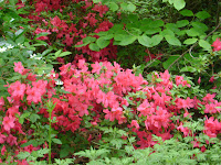 Today the azaleas bloomed!In the morning they looked like big fat lipsticks pointing straight up on the plants/among the dark green leaves, by evening they had opened!Beautiful blossoms that unfurled as the warmth of the sun worked on them.
